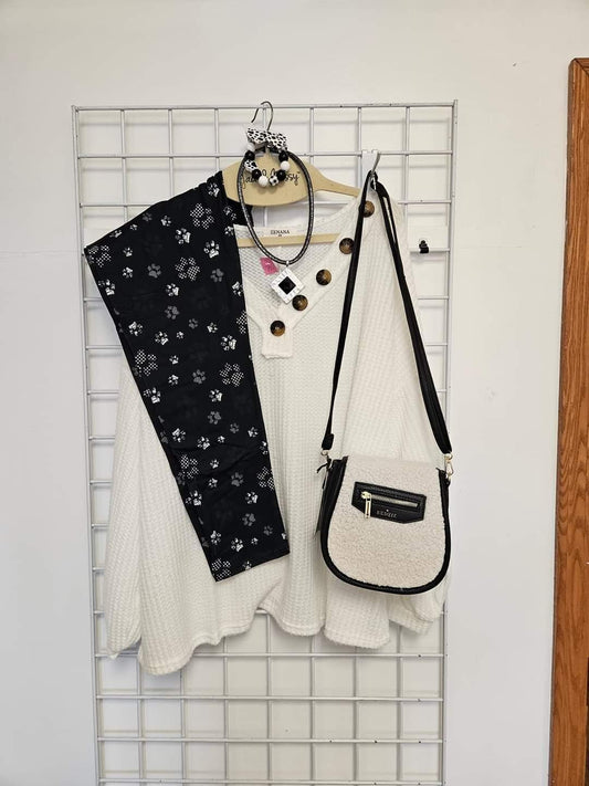 Black and white paw print Leggings with Pockets