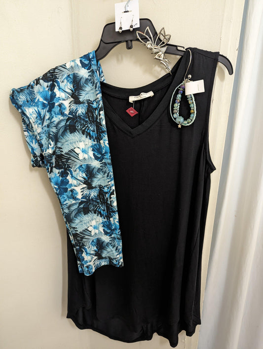 Yellow Dot, blue, gray, black floral Leggings with Pockets